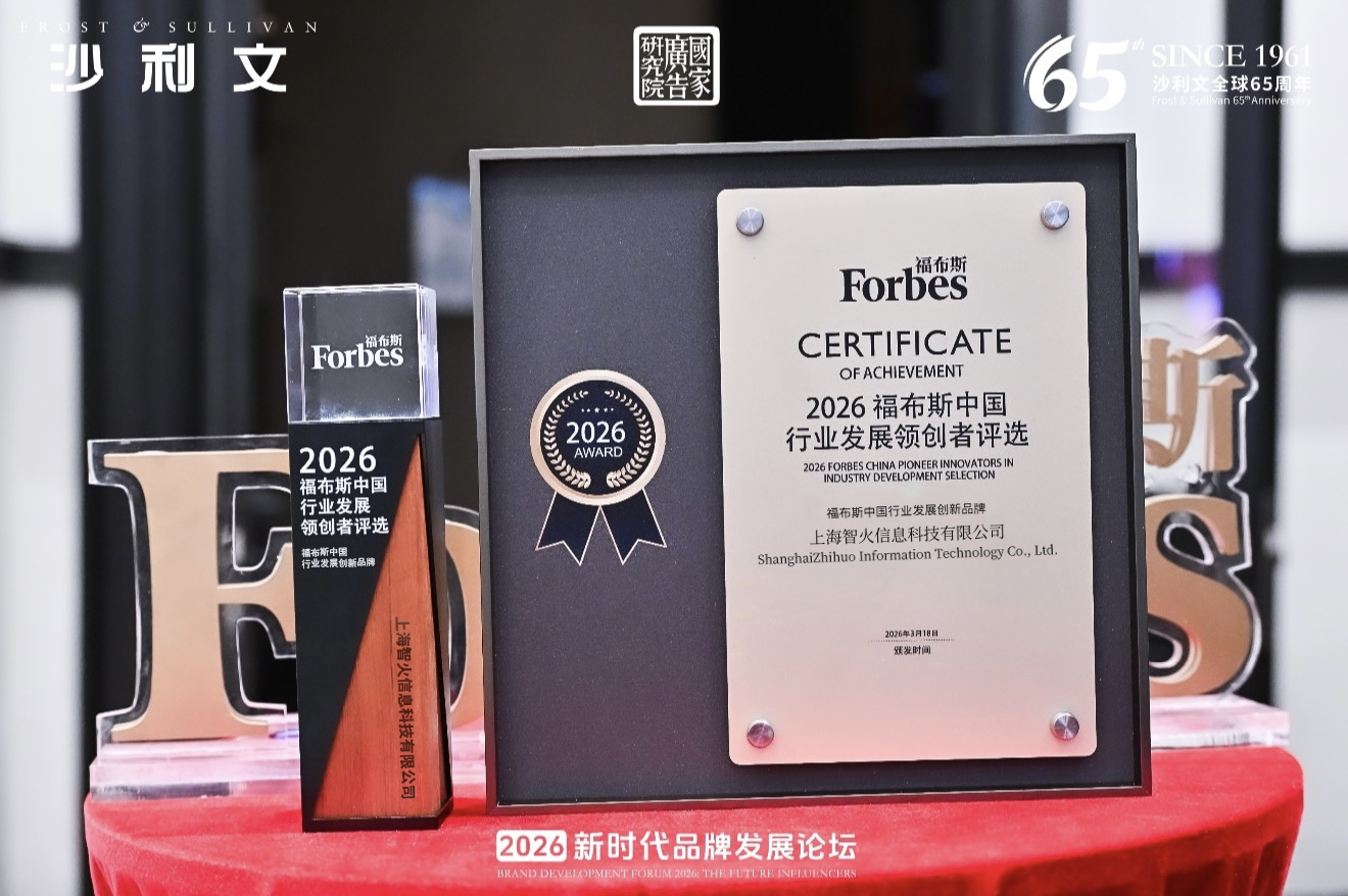2026年3月18日,由福布斯中国与全球知名增长咨询公司弗若斯特沙利文联合发起的"2026福布斯中国行业发展领创者评选”结果在上海宝格丽酒店正式揭晓;智火凭借在内容整合营销领域的持续创新与体系化服务能力,入选“创新品牌”榜单。